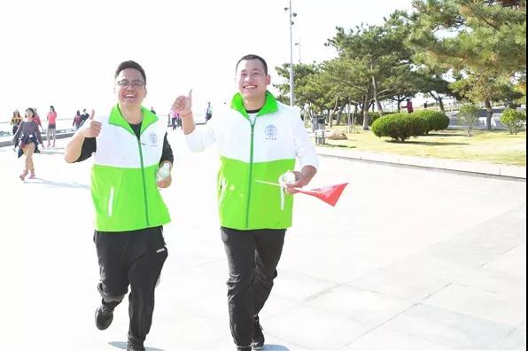 會務(wù)組人員為每位走完全程的參與者戴上了紀(jì)念獎牌,朱總為全程募捐金額最高的綠隊隊員頒發(fā)榮譽(yù)證書并現(xiàn)場微信視頻連線了兩所學(xué)校的校長。